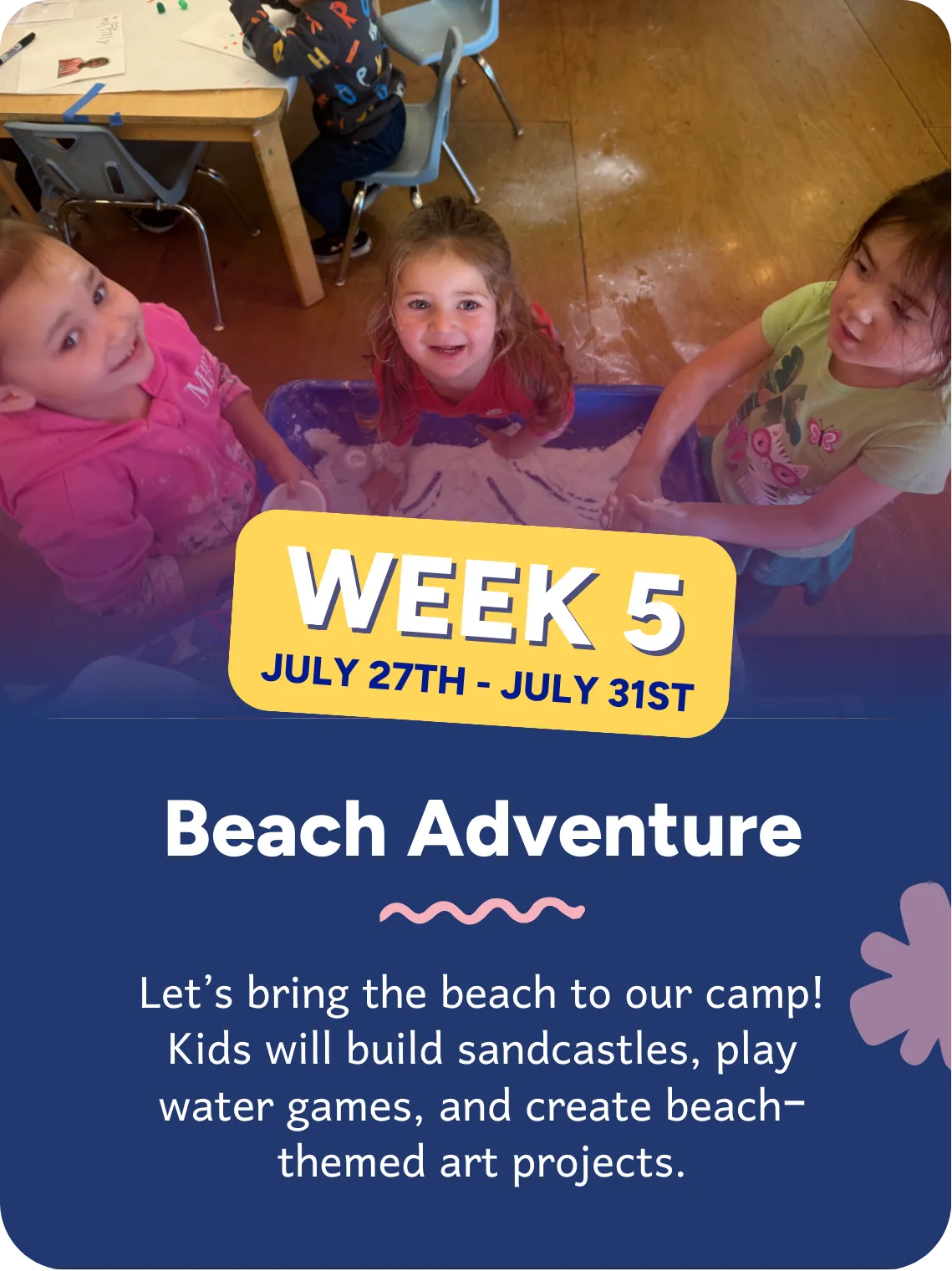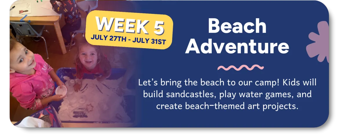 Our summer camp offers a new theme every week, providing exciting opportunities for your child to learn and grow. Below is a sneak peek of the fun activities we’ll be offering: